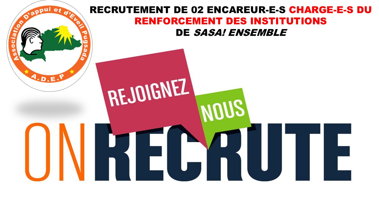 TERMES DE REFERENCE POUR LE RECRUTEMENT DE 02 ENCAREUR-E-S CHARGE-E-S DU RENFORCEMENT DES INSTITUTIONS DE SASA! ENSEMBLE