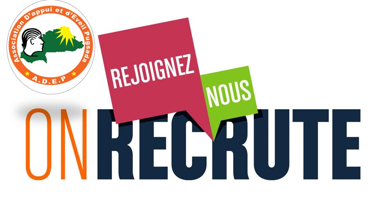 Postes : 02 encadreur-e-s chargé-e-s des institutions. Lieux d’affectation : la région du Kadiogo, province du Kadiogo, commune de Ouagadougou, quartiers Zagtouli et Zongo. Date de prise de fonction souhaitée : 18 fé